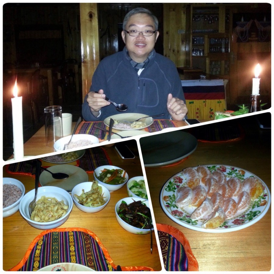 We spent so much time in the car that our backs and bums were aching by the time we finally arrived at Rinchenling Lodge around 18:15. The sun had set almost an hour ago, so we had been driving in the dark except for headlights. To our surprise, Rinchenling Lodge was dark as well, as though deserted! If there were some eerie background music, this would really look like a scene of a horror show… Dorji even had to get out of the car to open the gates himself.