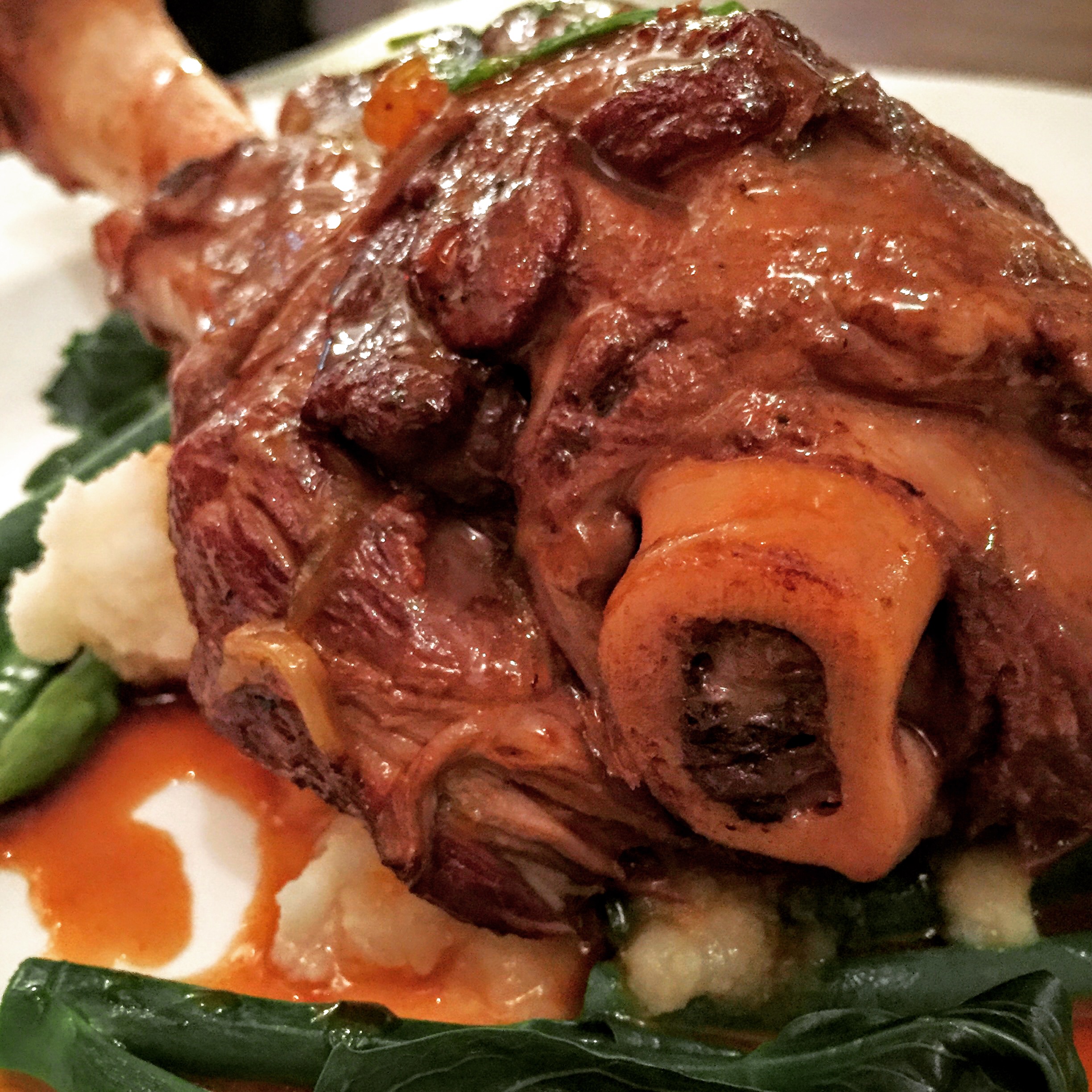 Lamb Shank slow braised with Apricot and mint on Mashed Potato
