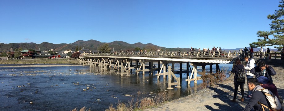 After lunch and post-lunch snack, we strolled along the streets and crossed the 渡月橋 Togetsukyo Bridge, and had a short stroll by the river… It was very cold!