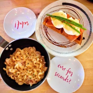 - Eggs Benedict with Smoked Salmon on Waffles ($13++): Crispy waffle and runny poached eggs, what else can we asked for?