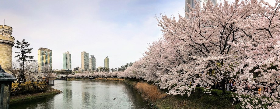 We searched online and saw that the cherry blossoms were blooming well at 석촌호수 벚꽃축제 Seokchon Lake Cherry Blossom Festival 石村湖櫻花節, and decided to pop over.
