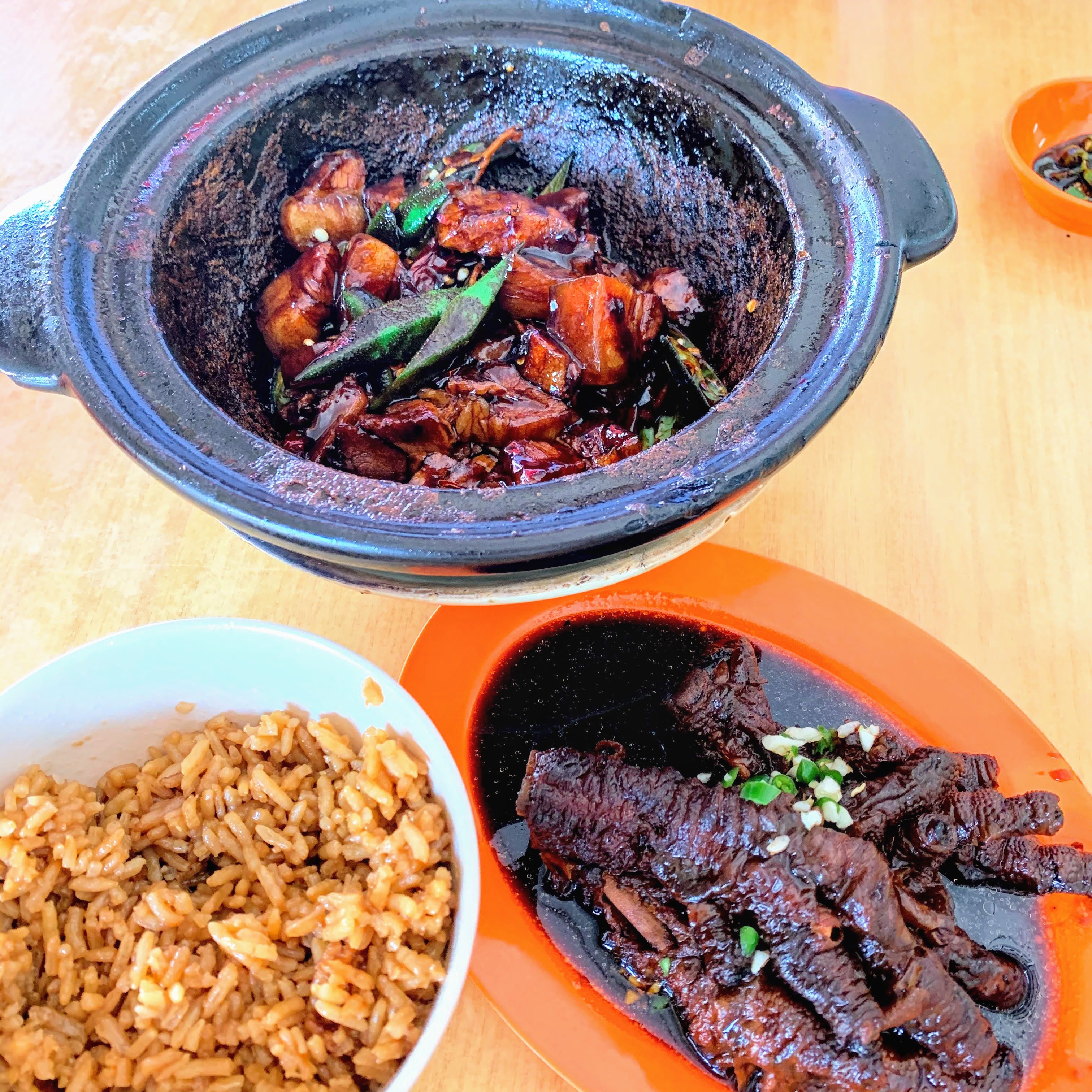 The pork belly were cooked in the herbal bak kut teh soup before being stirred in dark soy sauce gravy. The result was an addictive pot of savoury meat and ladies fingers! The Chicken Feet (RM3.50) was also delicious! The Yam Rice (RM1.20) was a tad disappointing as it was lacking in fragrance.