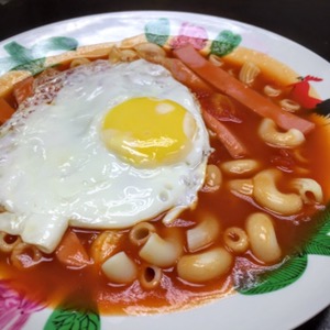 The macaroni arrived shortly after we downed the bun. The tomato gravy was tangy and sweet, whetting up our appetite. There was a generous amount of luncheon meat strips, that looked more like ham. The pasta was cooked just nice, and was slightly bouncy, not bad at all.