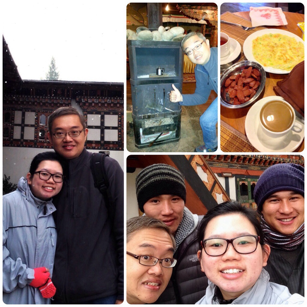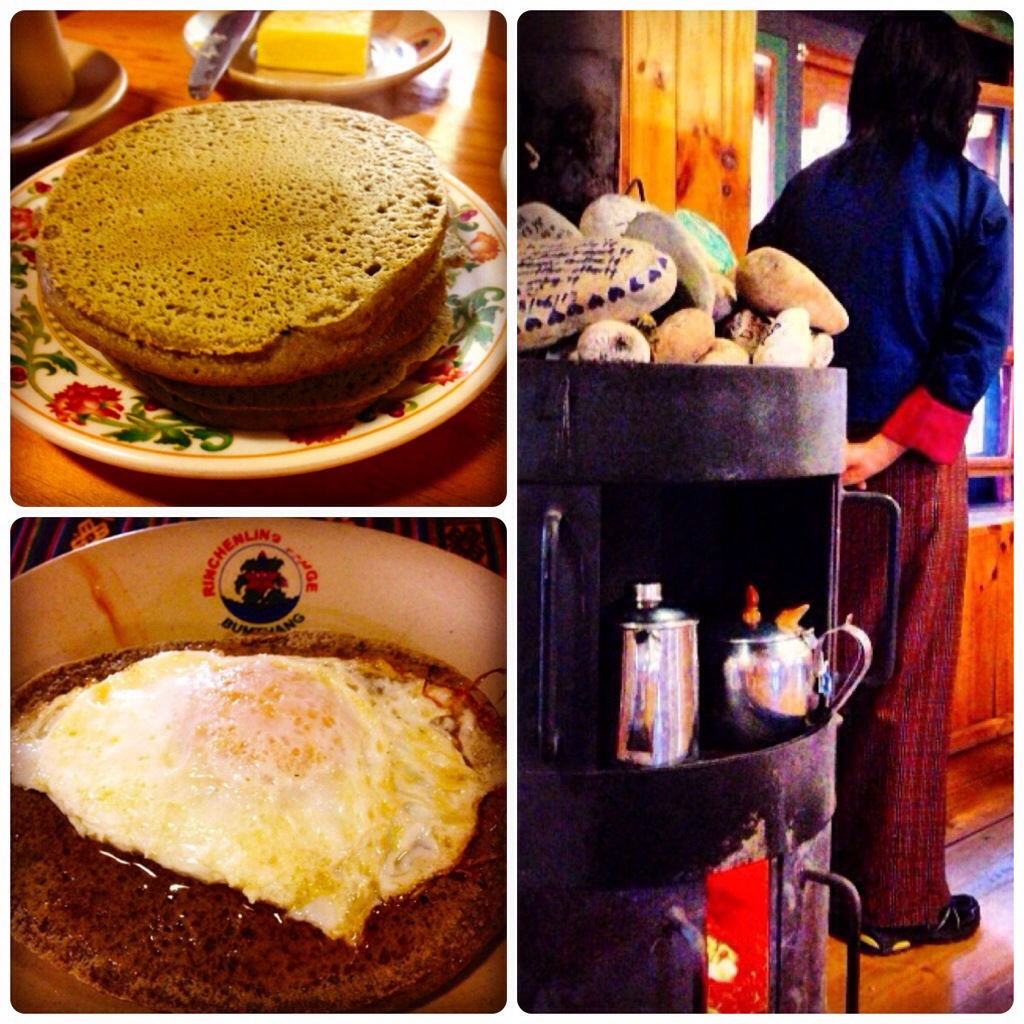 We had Bhutanese buckwheat pancakes for breakfast today 🙂 It was very dense and had a slight bitter taste to it, but it went well with the fried eggs with oozing egg yolks. Dorji said that they usually eat pancakes with chilli.. haha! By now, we were quite good at eating ema datshi during lunches and dinners, but we just couldn’t imagine having chillis for breakfast… We also shared our failed experiences in keeping our fire going, and Dorji promised to help us get some “fire starters”.